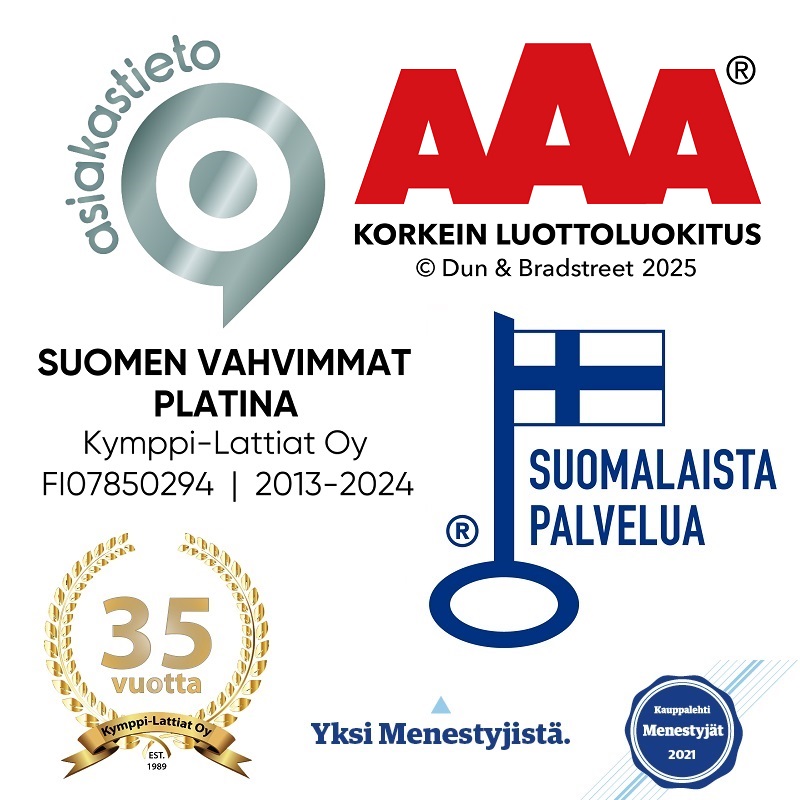 Kymppi-Lattiat Oy on vuonna 1989 perustettu perheyritys ja olemme siitä lähtien maahantuoneet markkinoillemme sisustusalan kärkituotteita. Valikoimaamme kuuluu laaja mallisto kauniita ja toimivia sisustusratkaisuja edustamillamme tuotteilla. Niihin kuuluvat mm. laatat, vinyylilankut, parketit, laminaatit, MDF-paneelit, verhoilukivet, laatoitustarvikkeet ja -aineet sekä lattiapäällysteiden ja paneeleiden asennukseen ja viimeistelyyn tarvittavat oheistuotteet.